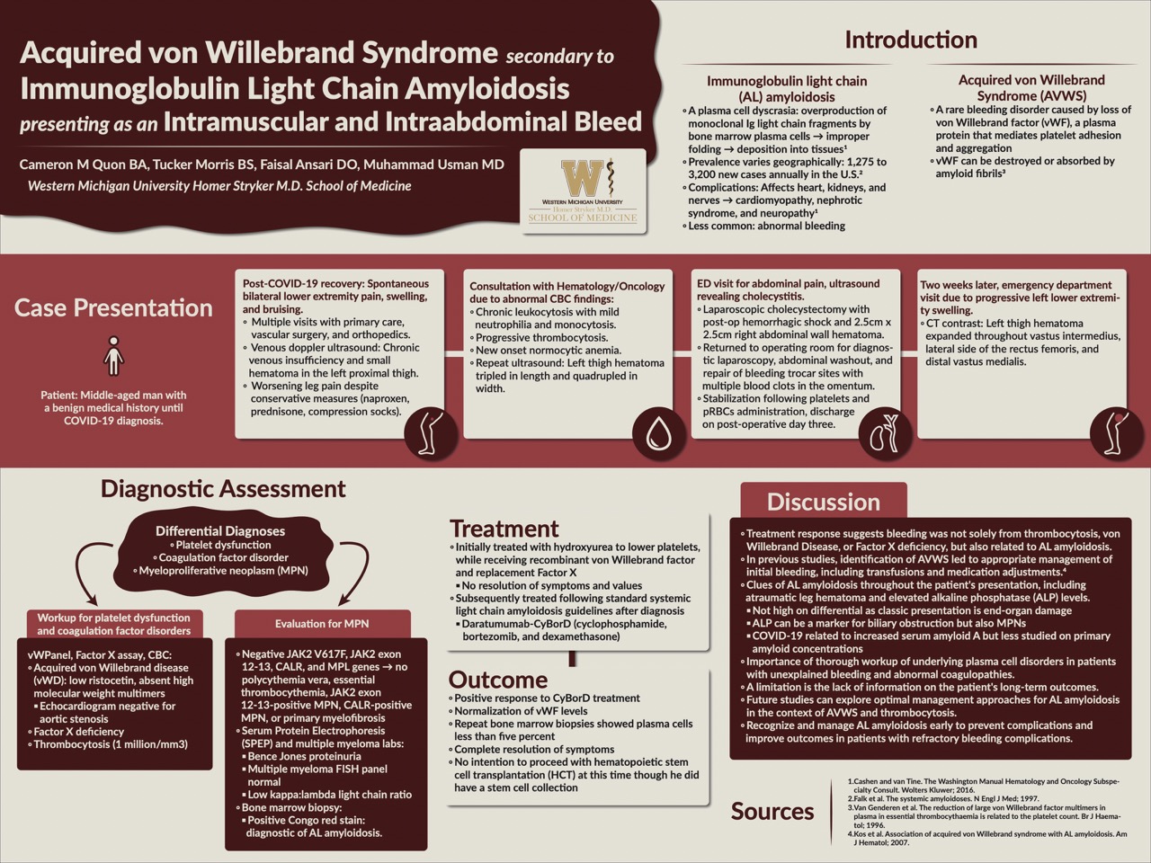I created this poster on a case report I wrote with my two colleagues on a patient who was diagnosed with primary amyloidosis after presenting with bleeding in his thigh and abdomen.