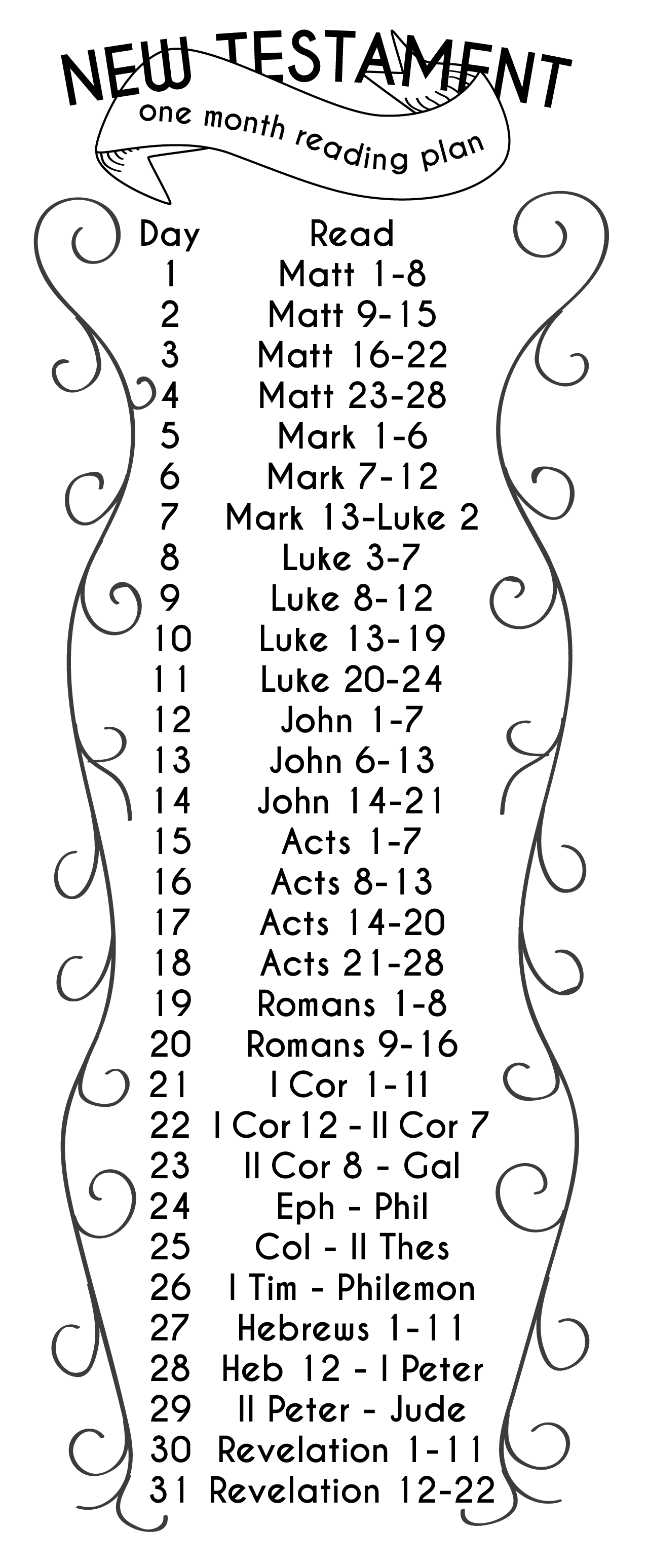 Bookmarks I drew and designed on Illustrator with a one month Bible reading plan. The New Testament bookmark plan takes about 30 minutes a day to read. The Old Testament bookmark, which only includes the historical books of the Old Testament, takes about 45 minutes a day to read. The plan was compiled by Tom Yeakley, U.S. Field Director for the Navigators. Click to download the PDF!