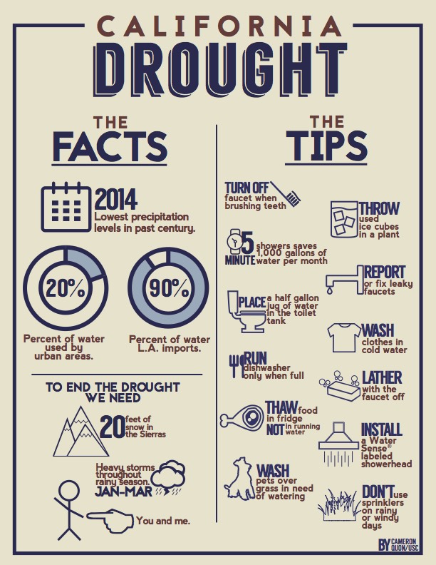DESIGN Water Conservation Infographic December 15, 2014 Facts about California's drought and quick tips on how to save more water. You can read the full story on a piece I did for Neon Tommy. BACK