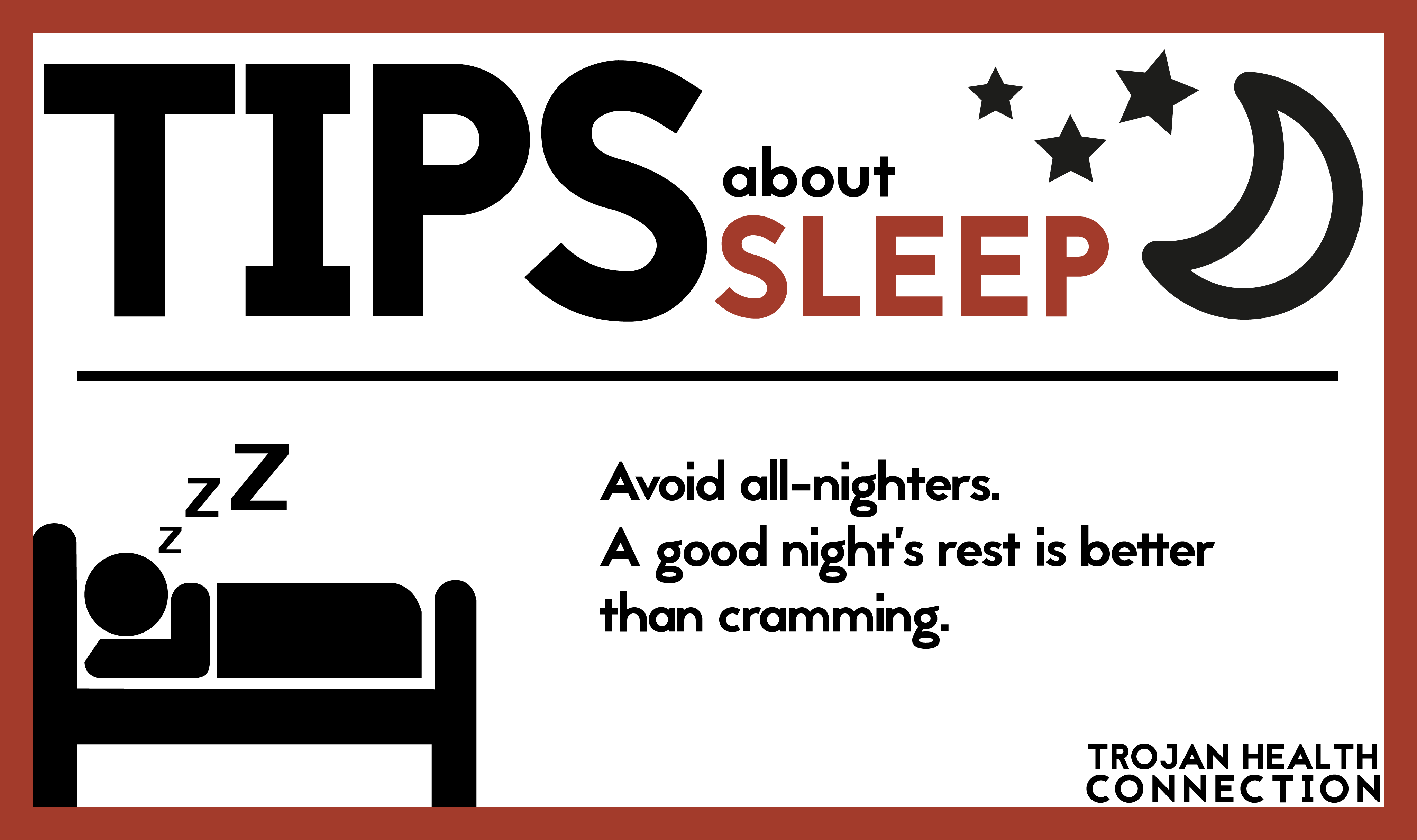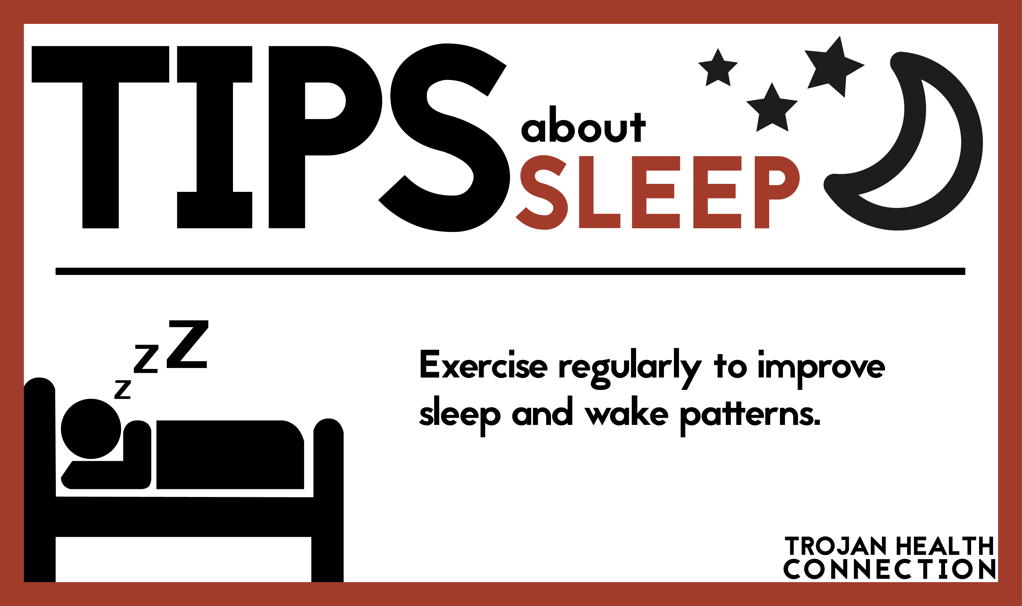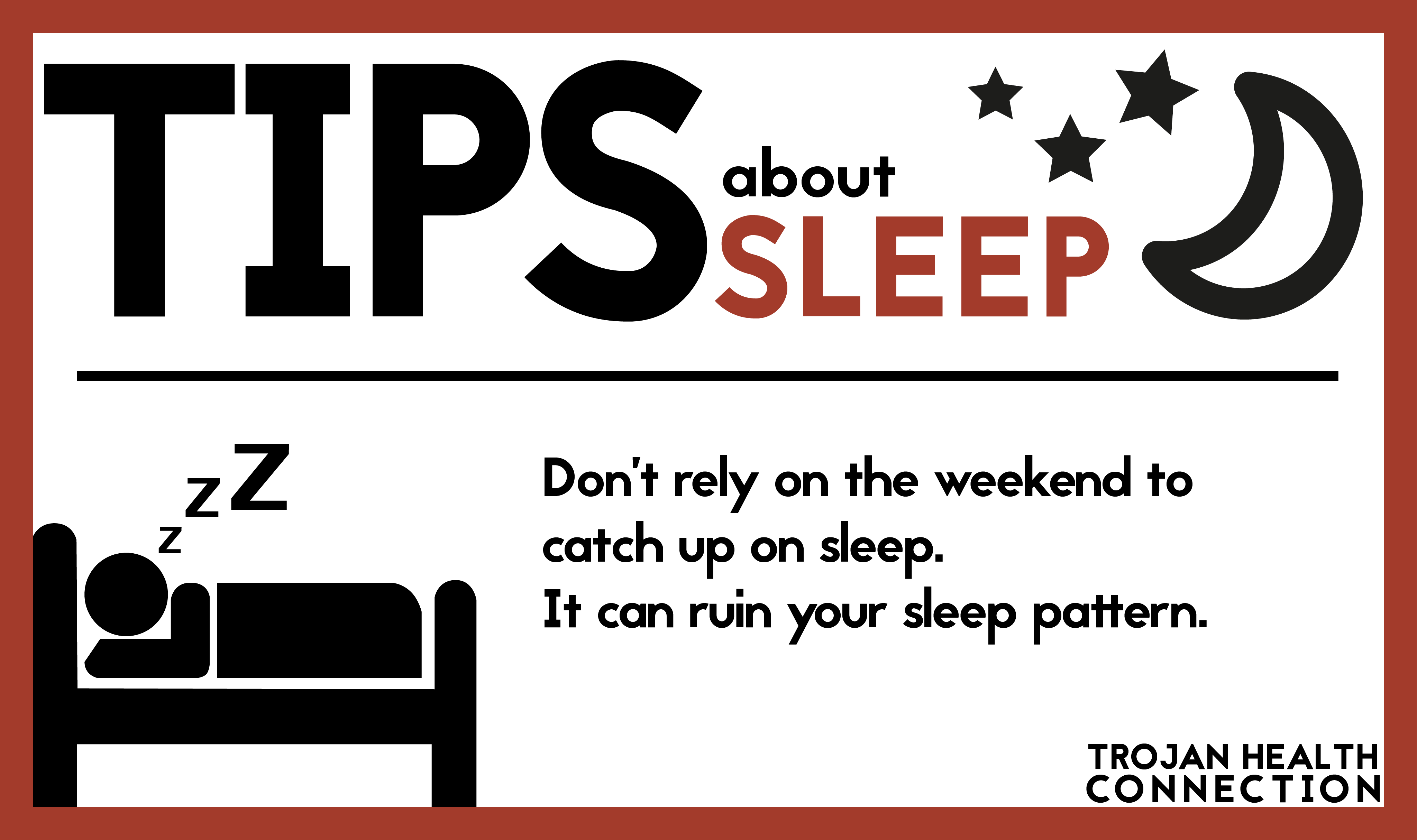 DESIGN   Sleep Tips Infographic Cards March 11, 2015 I made these infographic cards for Trojan Health Connection's social media initiative. The intention is to post a card periodically on Twitter and Facebook to increase our presence beyond our bi-annual print publication.     BACK