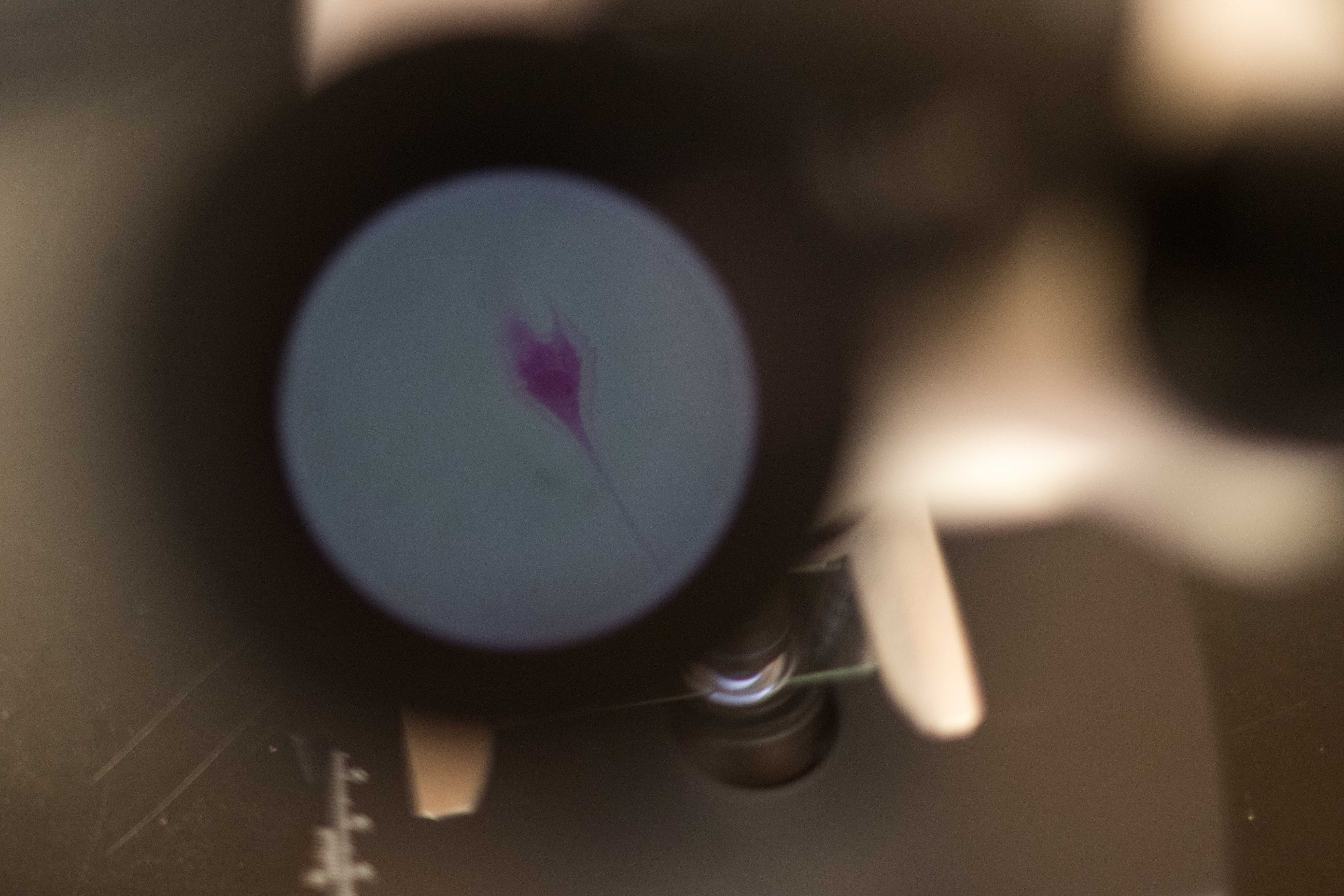 This is a dinoflagellate. It’s also a one-celled organism. It moves around with two tails called flagella. It has a deep groove across its body.