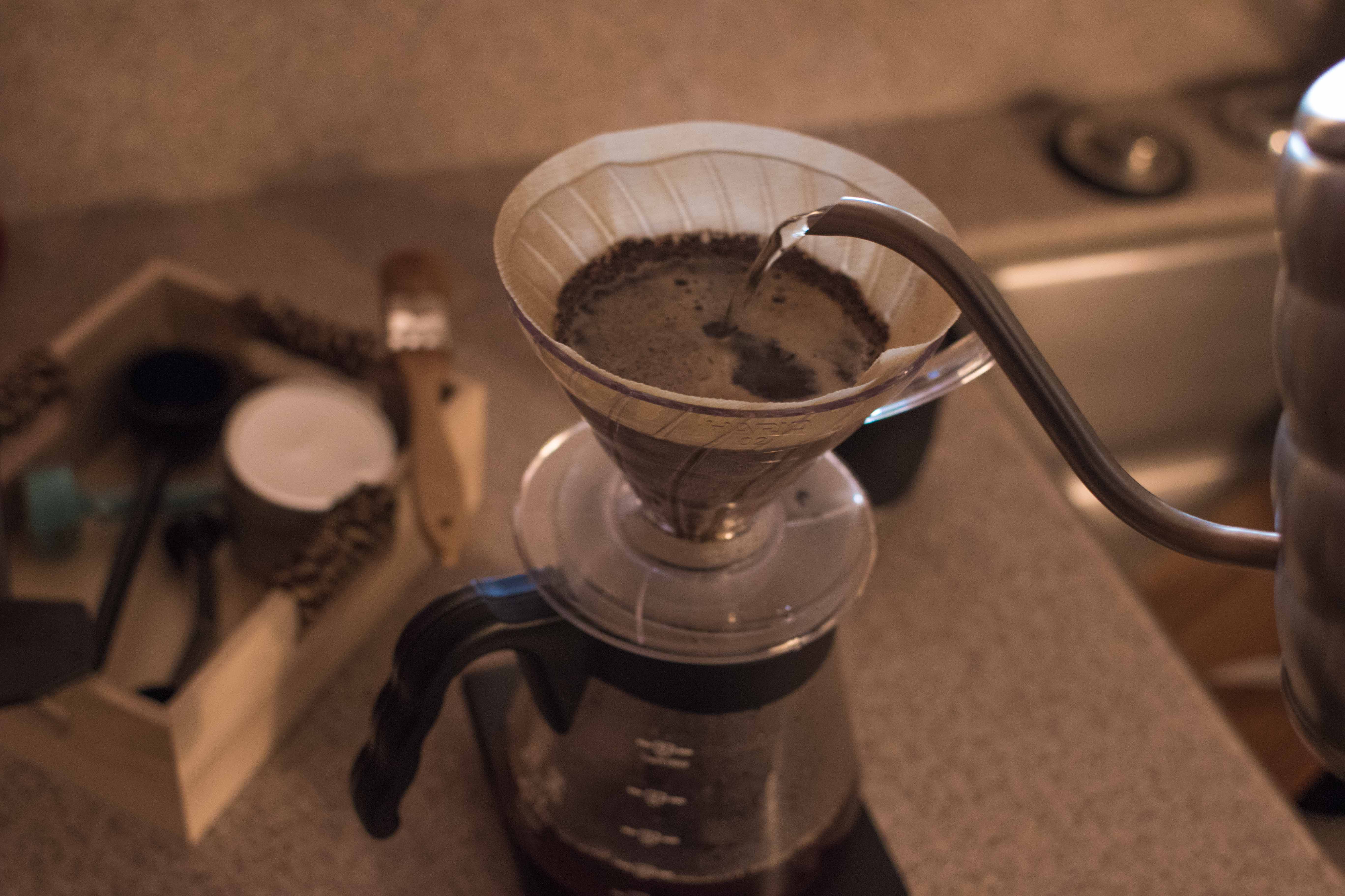 Today I’m brewing my coffee with the Hario V60—a drip filtration method.