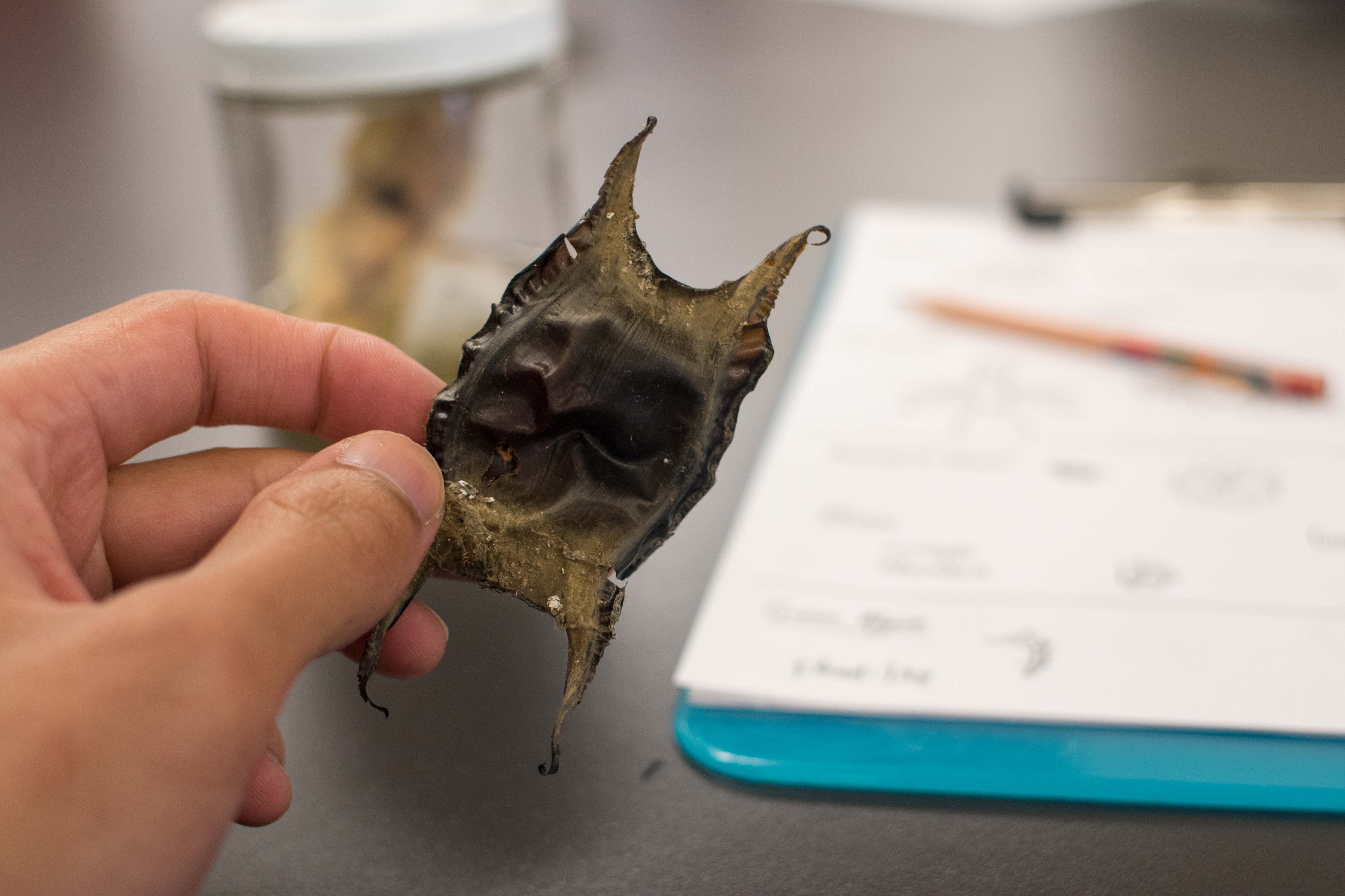 In my biological oceanography class, we are studying different marine organisms. This is a mermaid’s purse—an egg case for a shark.