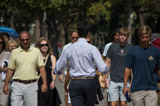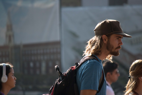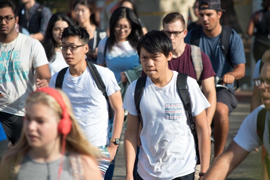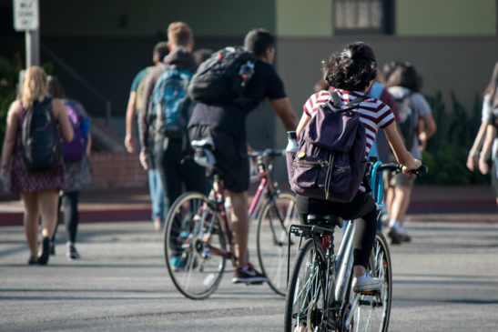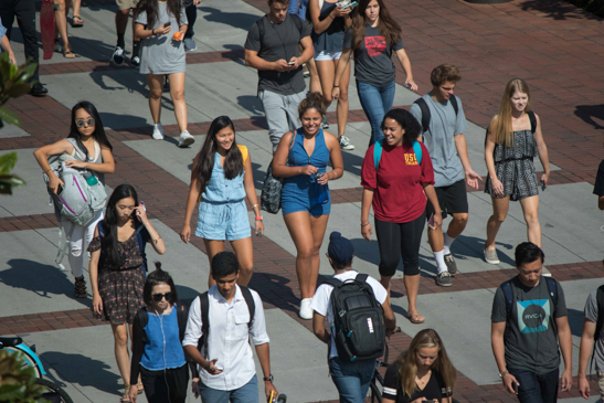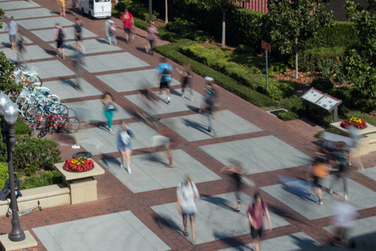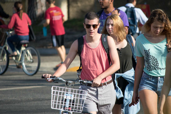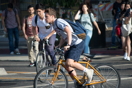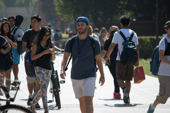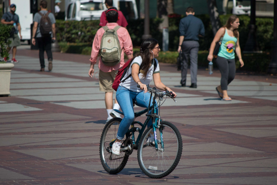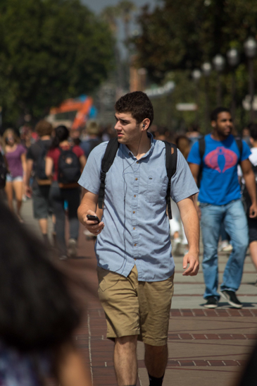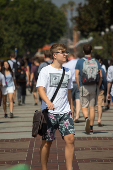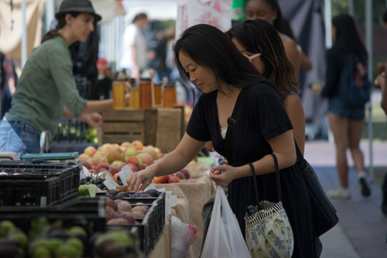 A girl stops by the USC farmer’s market on McCarthy Quad.