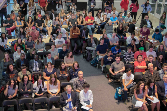 Chairs were set up in the lobby for students, professors, and faculty to watch.