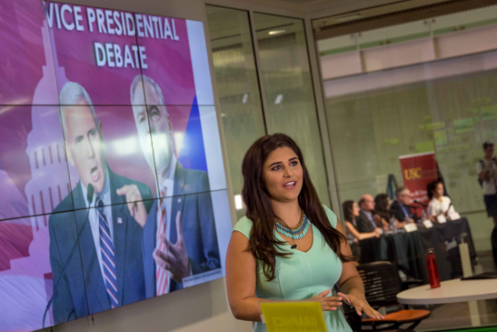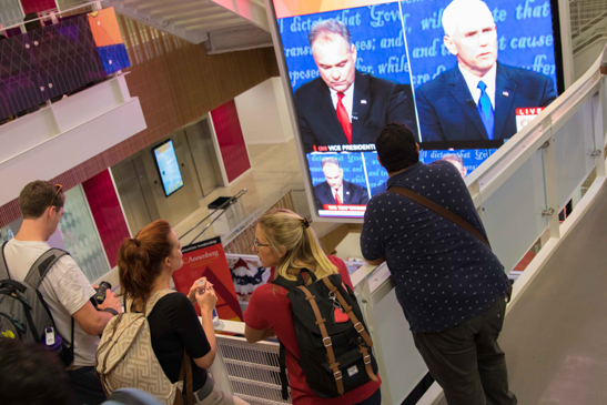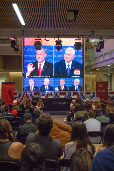 Over 100 people came through Wallis Annenberg Hall to watch the Tuesday night vice presidential debate.