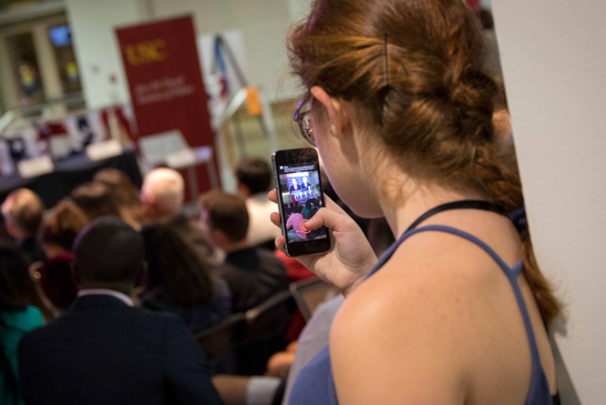 Thirty minutes before the debate, Annenberg TV News aired. Anchor, Brittany Hope, did a live stand-up in the Media Center.