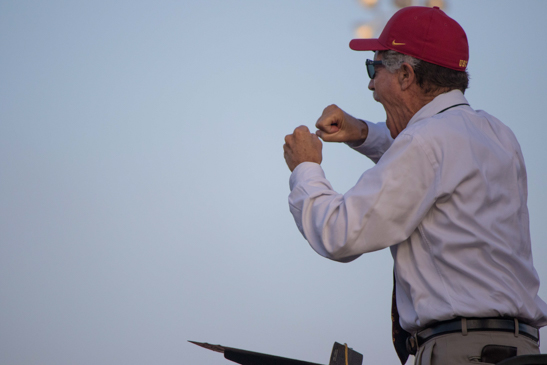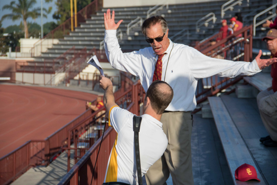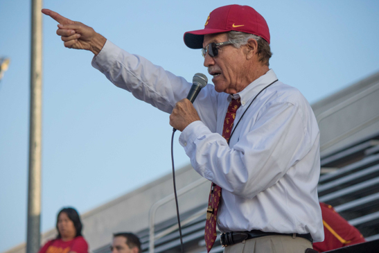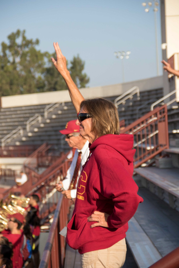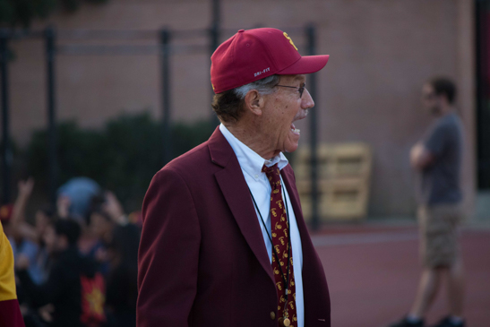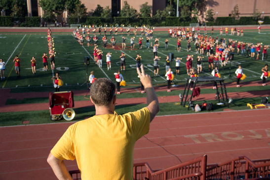 Dr. Arthur Bartner, the Trojan Marching Band's director, takes to Cromwell field for his 47th season as USC's band leader.