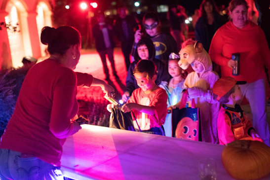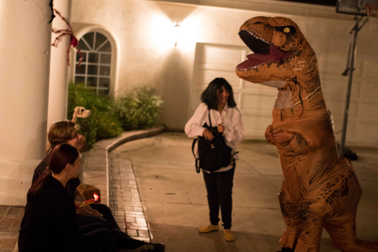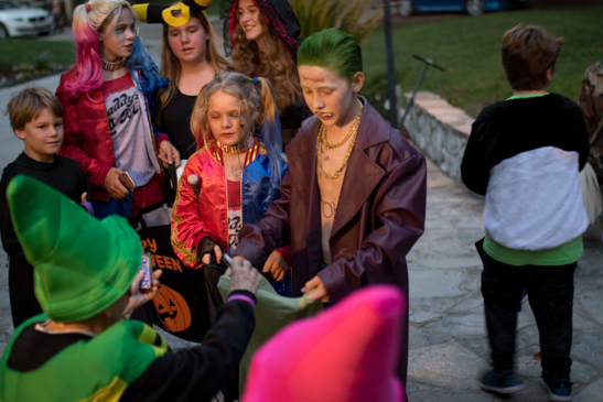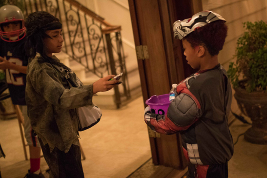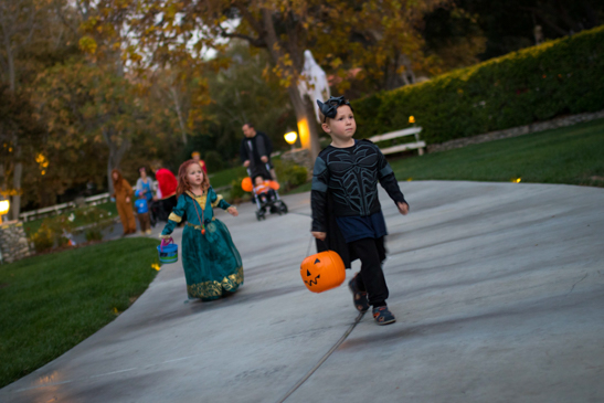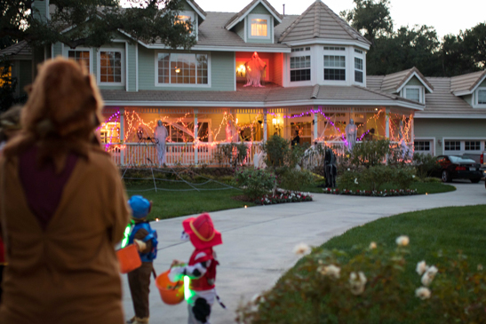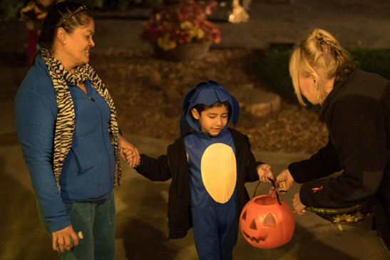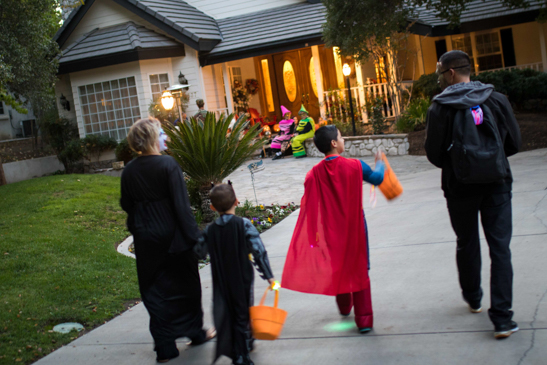 Trick-or-treaters start coming through the neighborhood around 5:30 p.m.