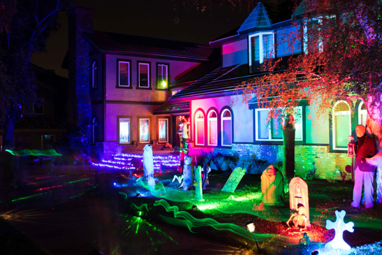 This house began decorating back in June with an elaborate frontyard graveyard scene.