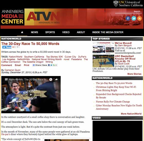 Writing Jan 14, 2016 L.A. Dance Crew Brings Hip-Hop And Smiles To Kids In Hospital Dec 27, 2015 NaNoWriMo: The 30-Day Race To 50,000 Words Dec 11, 2015 The Los Angeles Public Library and the Quest for Community Nov 4, 2015 Chinatown: The Tale Of Three Plazas Oct 15, 2015 SPiN: The Table Tennis Club That's a Hot Spot for a Melting Pot Oct 7, 2015 Food Trucks on Miracle Mile May 14, 2015 The Dilemma Of Development: Studio City Residents Divided Over New Construction March 31, 2015 Despite Resistance, New Upscale Shopping Center Approved For Studio City March 11, 2015 Vets Helping Vets On Art Walk Mar 3, 2015 Meet Pichid, A Thai Immigrant Who Actually Cares About L.A. Politics March 2, 2015 Newcomer Eric Preven Shakes Up L.A. City Council Race Oct 20, 2014 Chinatown Reboot Dec 16, 2014 It May Be Raining, but the Drought's Not Over Dec 6, 2014 Recipe: A Caffeine-Filled Milkshake Perfect For Finals Week Oct 31, 2014 MIDTERM WATCH: Challenges Facing Farmers in California's 36th District